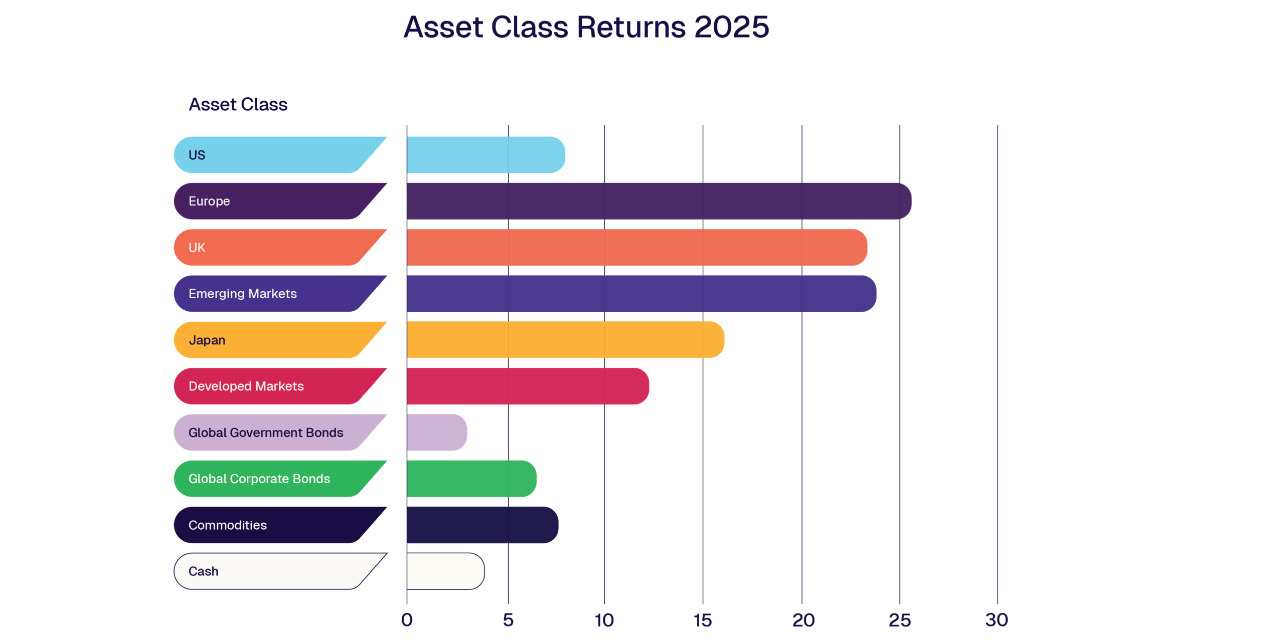 Emerging market debt and high-yield bonds were among the strongest performers. However, investors did not see a meaningful premium for taking on higher risk, which led many to favour short-dated investment-grade corporate bonds—offering attractive yields with lower volatility.